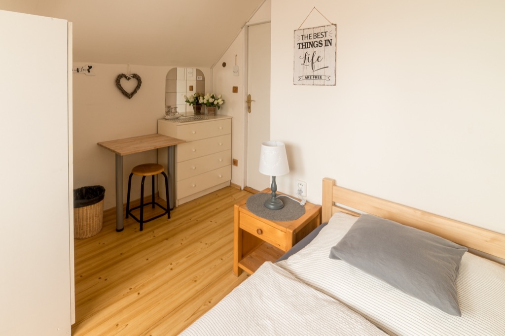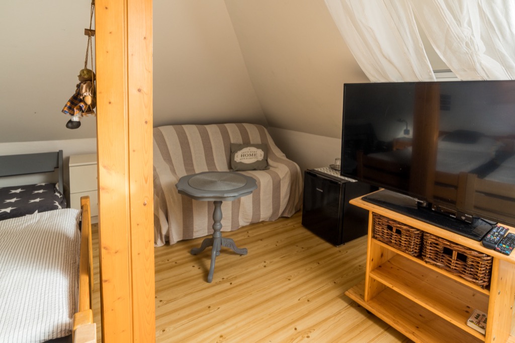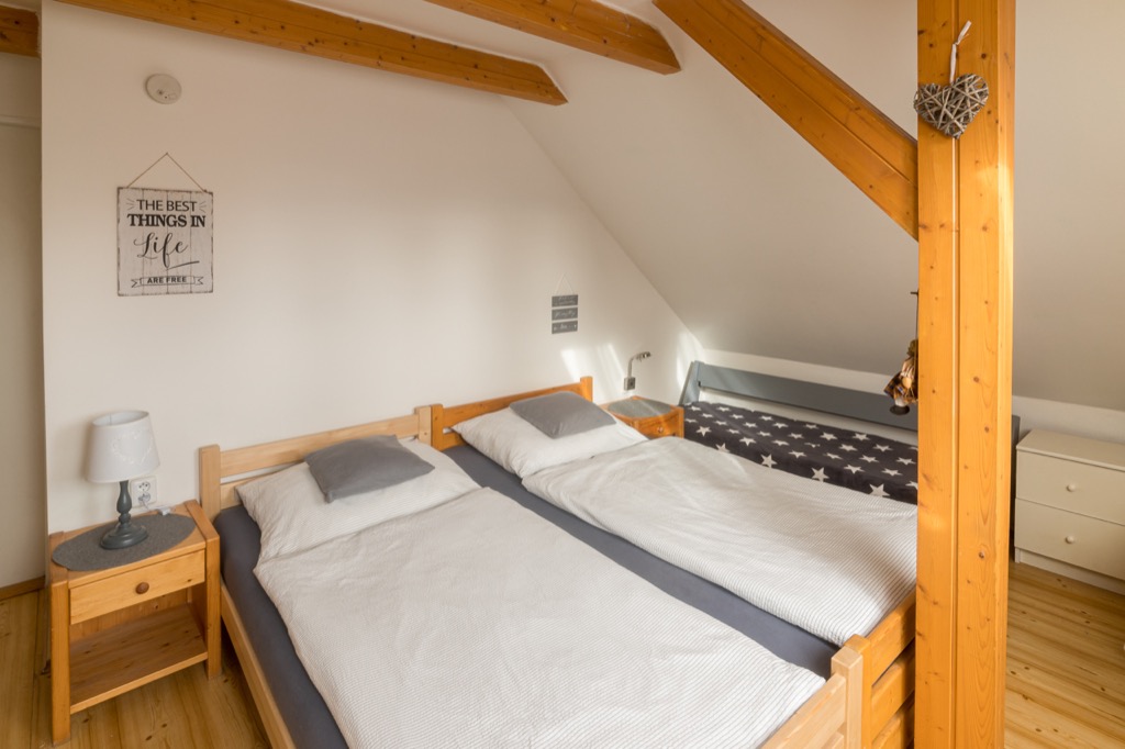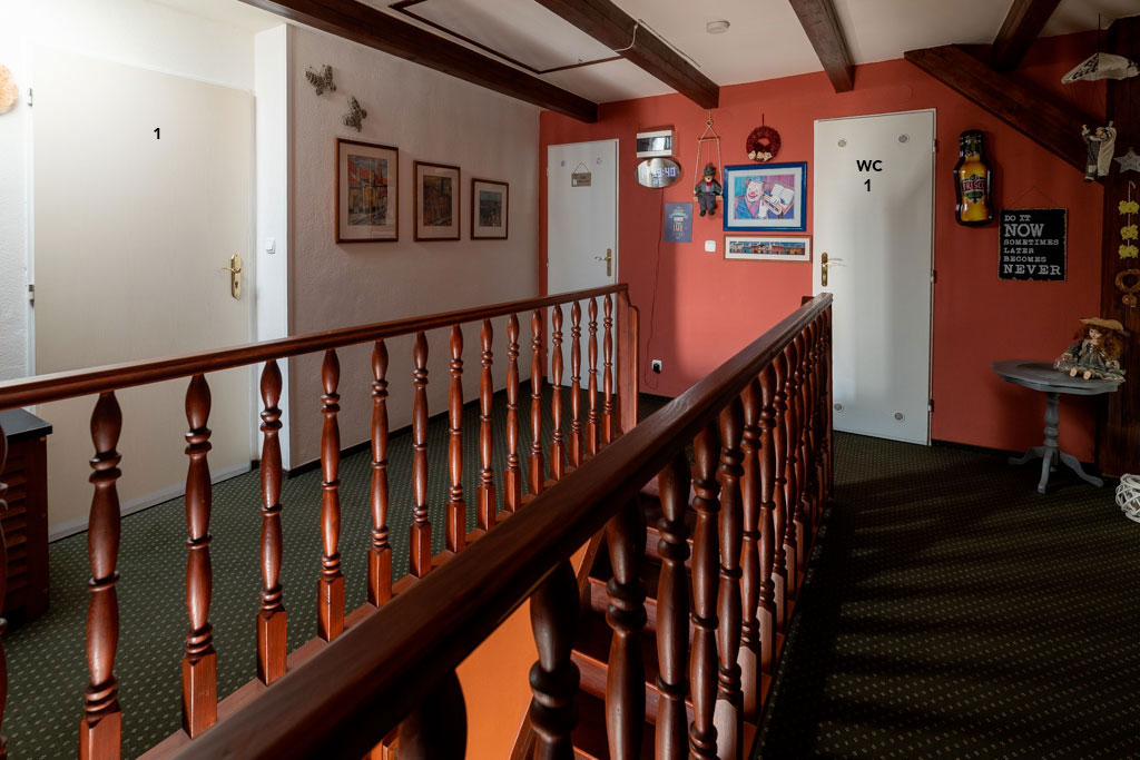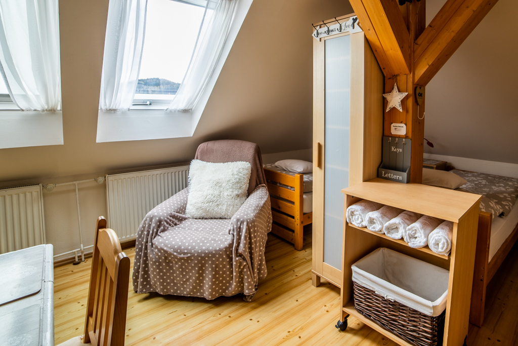 Třílůžkový pokoj + přistýlka s vlastním sociálním zařízením na chodbě. |